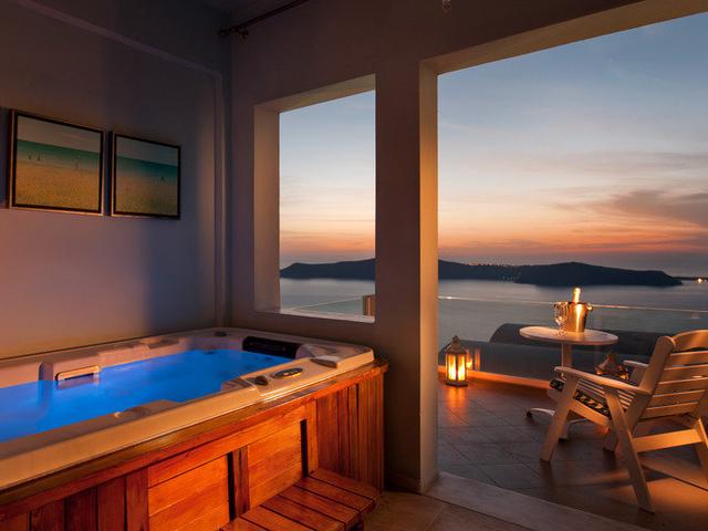 Lage: Auf den Klippen, mit einem atemberaubenden Blick auf die Caldera. Zum Dorf Imerovigli ca. 2 km, Haltestelle in ca. 100 m.