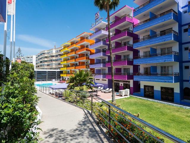 Lage & Umgebung Dieses Apartmenthotel, ideal für Familien und Singles, liegt im Zentrum von Playa del Inglés, ca. 800 m vom öffentlichen Sandstrand entfernt. Direkt am Gebäude befindet sich eine Bushaltestelle.
