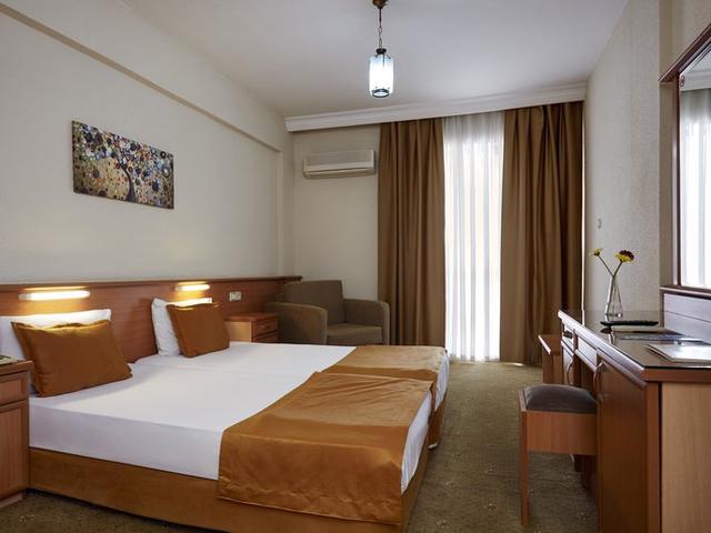 Ausstattung: Hotel der Mittelklasse, bestehend aus Hauptgebäude (HH), Nebengebäude (NG). 2 Swimmingpools, 2 Rutschen, sep. Kinderpool (Rutsche), Sonnenterrasse, Liegen, Schirme, Pool-/Snackbar. Rezeption, Lobbybar, WLAN, Buffetrestaurant, À-la-carte-Restaurant. Landeskategorie: 3 Sterne, 105 Zimmer, 4-5 Etagen, Lift (HH).